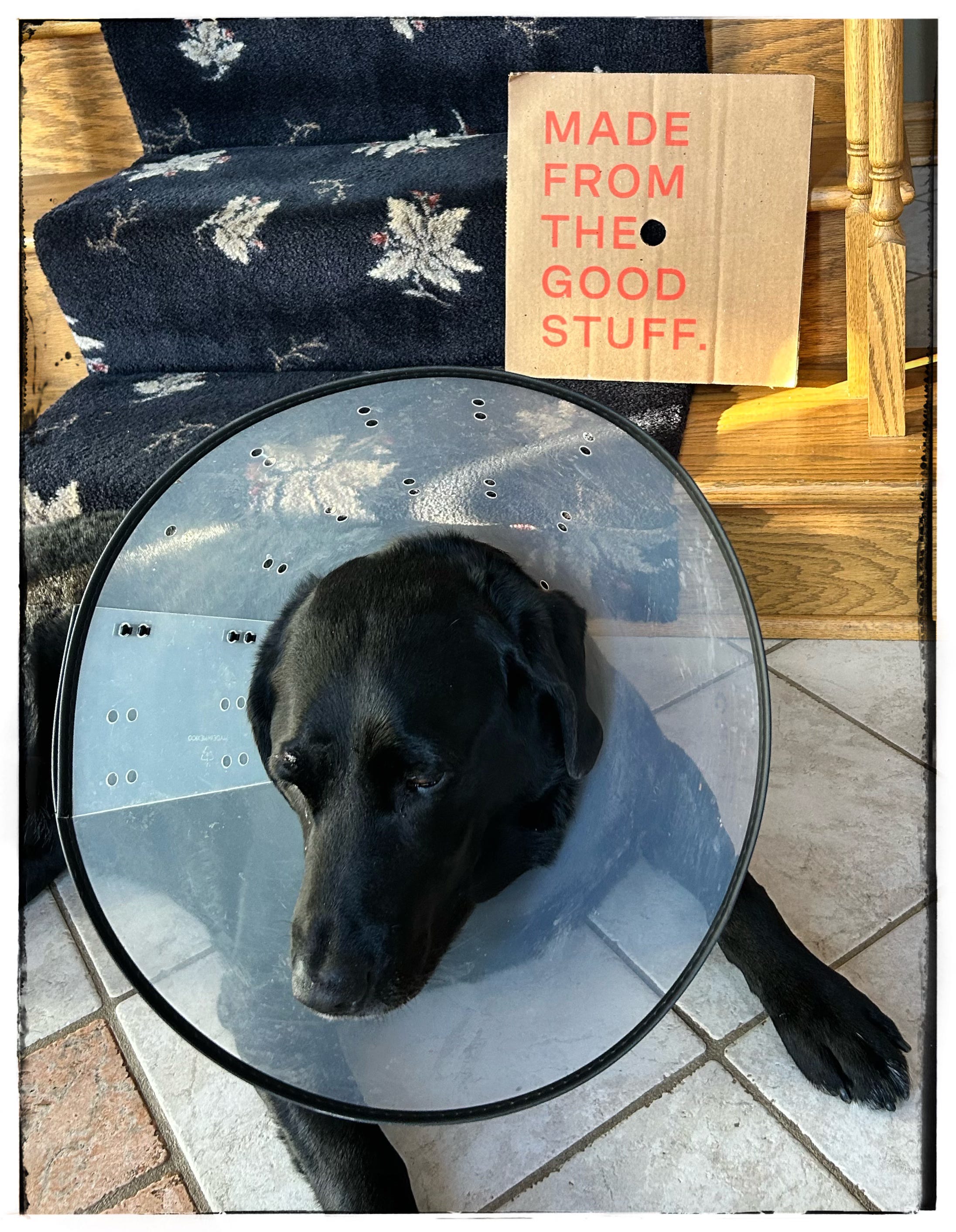 Henrietta is gonna be fine, although she really does not like the cone.